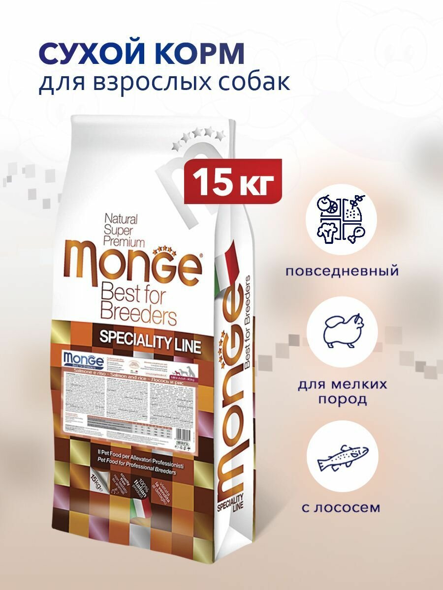 Сухой корм для собак Monge Speciality line, лосось, с рисом 1 уп. х 1 шт. х 15 кг (для мелких и карликовых пород)