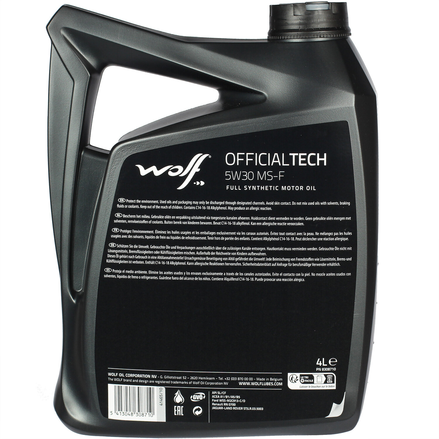 масло моторное wolf oil officialtech ms-f 5w-30 синтетическое 4 л 8308710