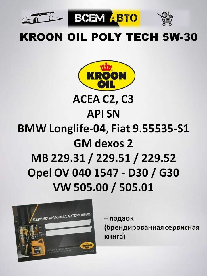 СохранитьСинтетическое моторное масло Kroon Oil Poly Tech 5W-30, 5 л, 1 шт. интересное: