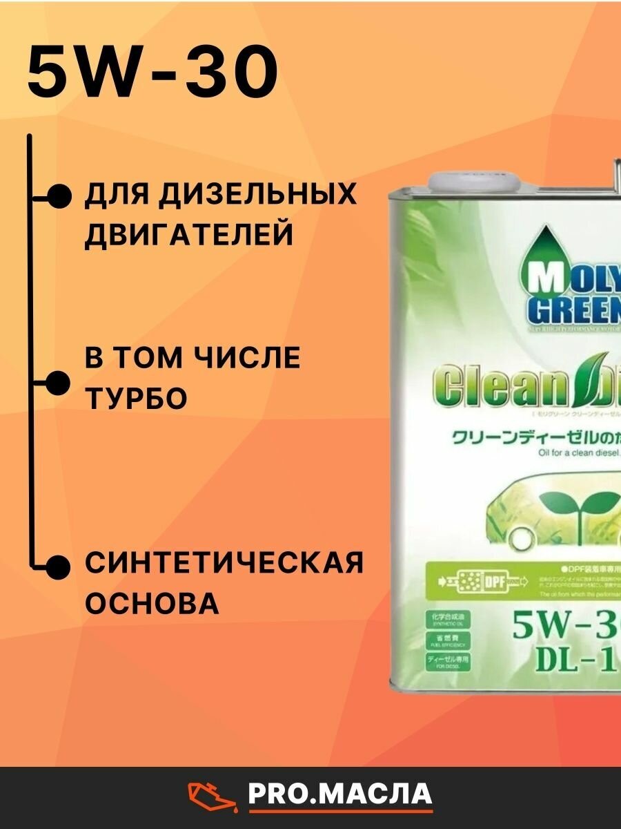 MOLYGREEN Масло Моторное "Clean Diesel Dl-1 5w-30", 4 L