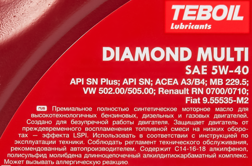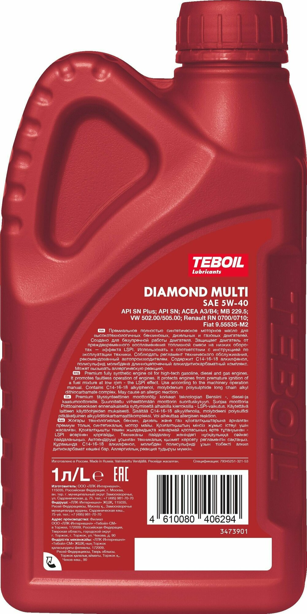 Teboil Рњр°Сѓр»Рѕ Рјрѕс‚Рѕсђрѕрѕрµ Сѓрёрѕс‚Рµс‚Рёс‡Рµсѓрєрѕрµ "Diamond Multi 5W-40", 4Р»