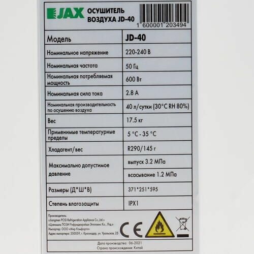 Осушитель воздуха JAX JD-40 белый интересное: