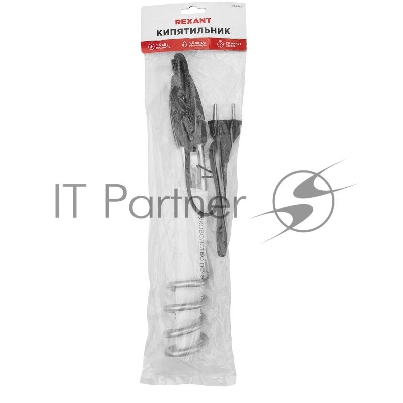 Электрокипятильник REXANT 1500 Вт ТЭН 19,50 см, Длина шнура 65 см, упаковка пакет