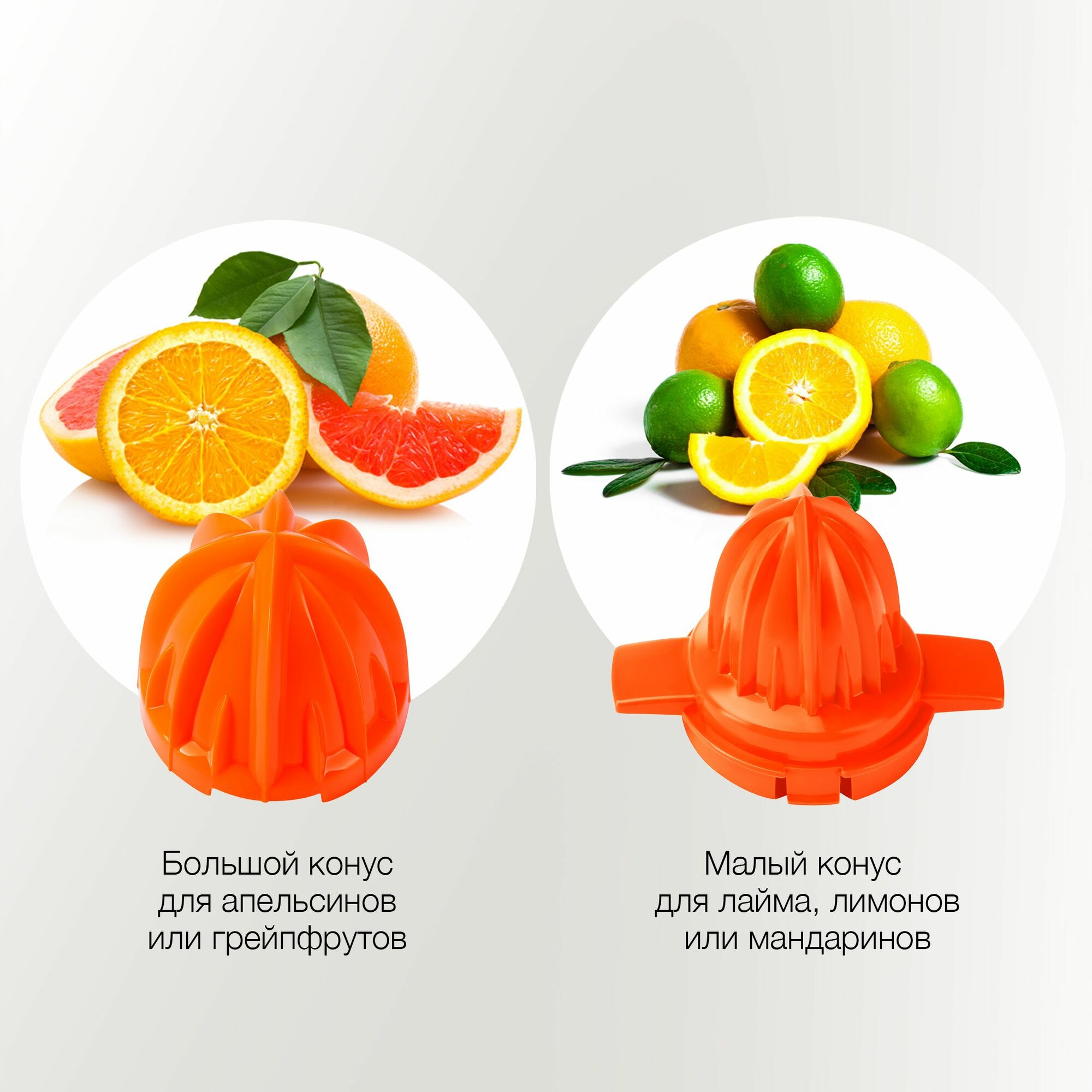 | Плюсы: | 2 насадки для разного размера цитрусовых. Вал электродвигателя вращается в обе стороны. Начинает работать если надавить половинкой фрукта на конус соковыжималки. |