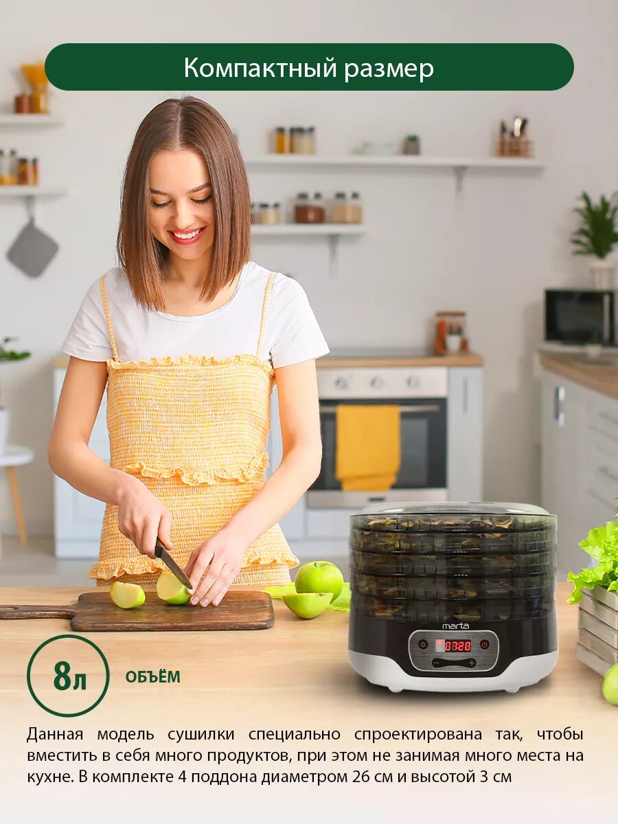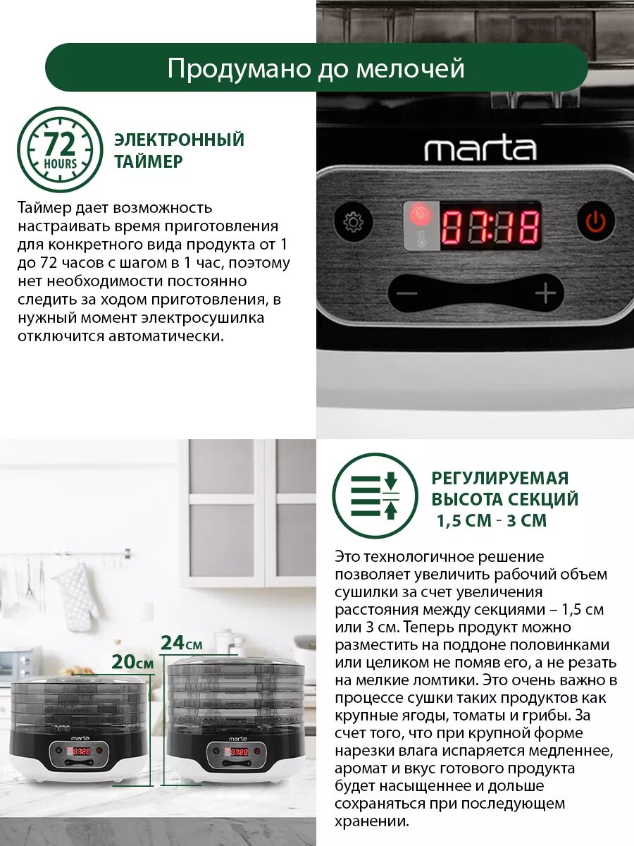 MARTA MFD-504PS 4 поддона темный обсидиан сушилка д/фруктов,овощей