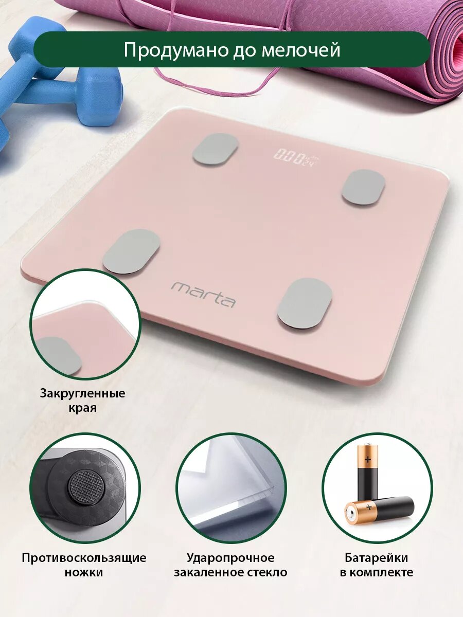 Весы напольные умные MARTA MT-1606 розовый кварц