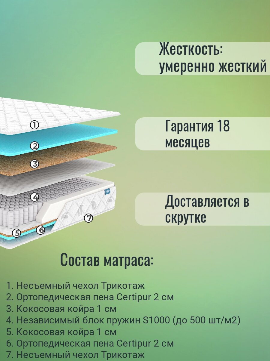 | Наполнитель | комбинированный (кокос + пенополиуретан) |