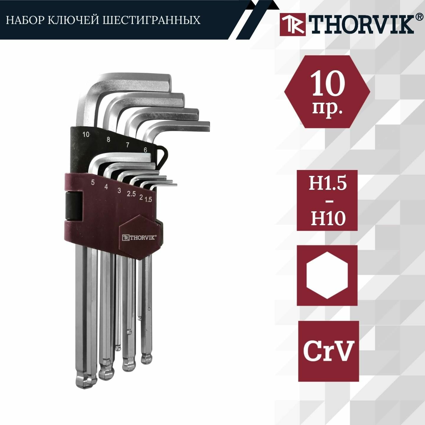 Набор ключей шестигранных THORVIK с шаром H1.5-H10, 10 предметов