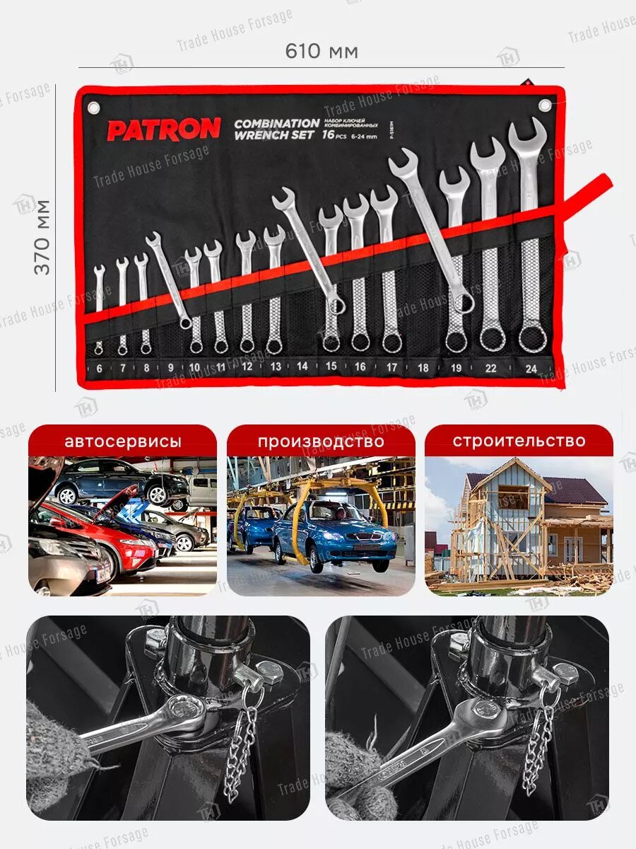 Набор ключей комбинированных 16пр. (6-19, 22, 24мм)на полотне Forsage F-5161P интересное: