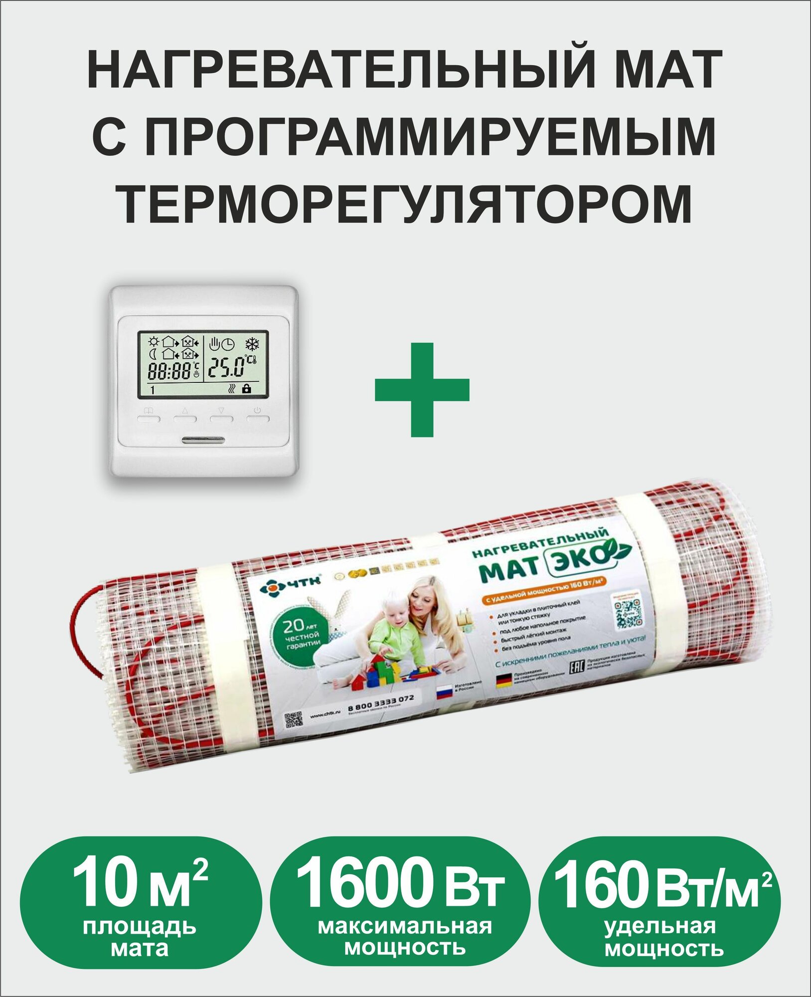 Комплект: Мат нагревательный ЭКО 10,0 кв. м. 1600 Вт. + программируемый терморегулятор