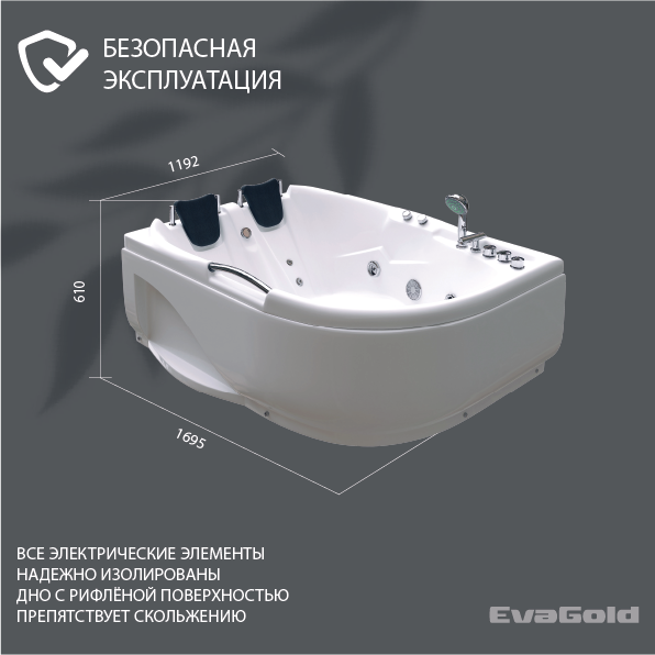 Гидромассажная ванна EvaGold OLB-807 L 120х170 белая с насосом и переливом интересное: