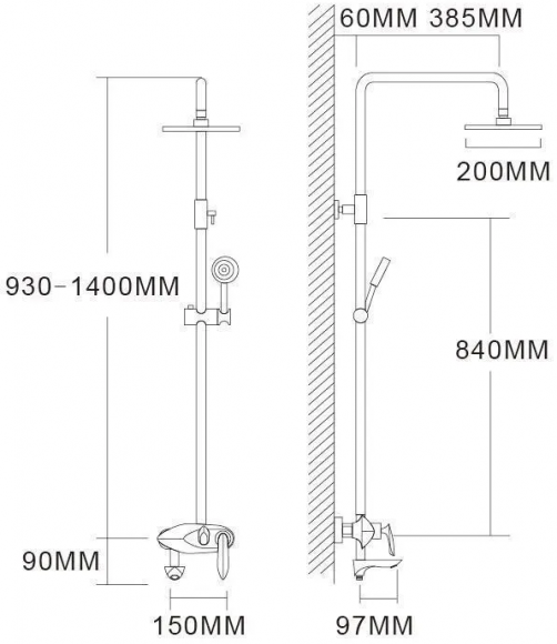 | Форма бокового душа | нестандартная |