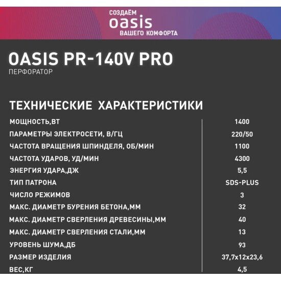 Перфоратор Oasis PR-140V Р0000013919