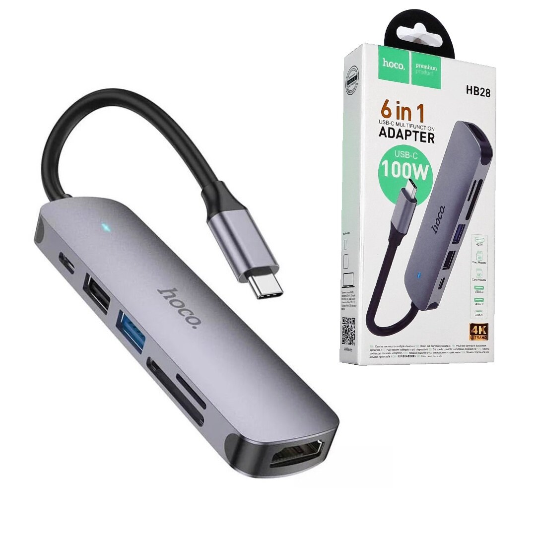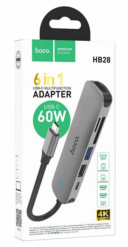 Купить Адаптер HOCO HB28 USB-C на HDTV+USB 3.0+USB2.0+SD+TF (серый)