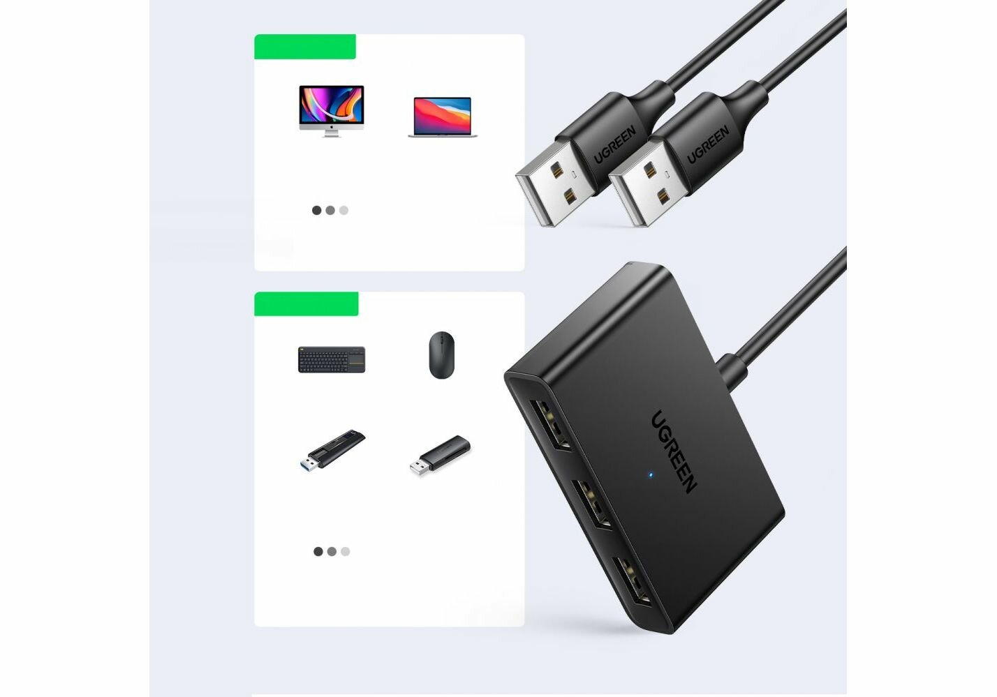 USB-концентратор UGREEN USB 2.0 Sharing Switch Box (2 In 3 Out) CM409 (10935) интересное: