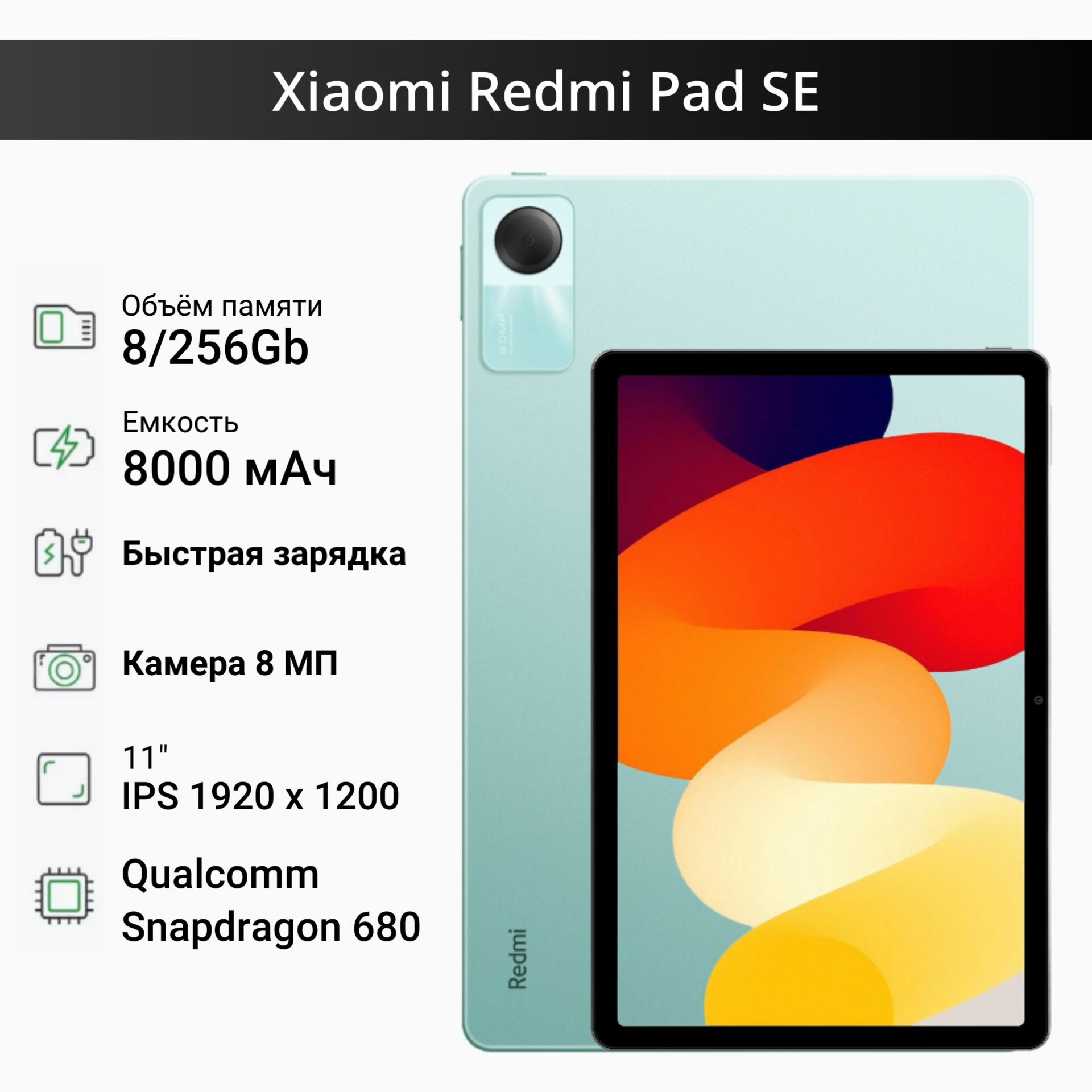 СохранитьПланшет Xiaomi Redmi Pad SE 8+256GB Mint Green интересное: