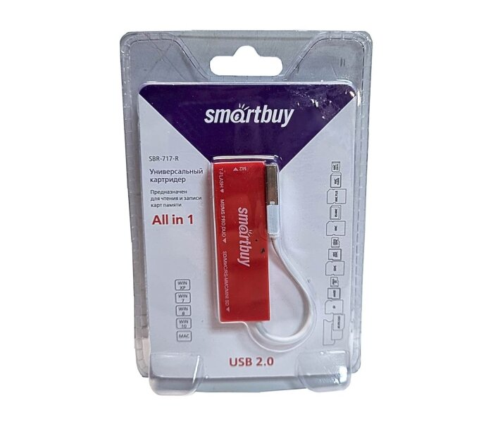 Картридер SBR-717-R, Red, универсальный All in 1, SmartBuy
