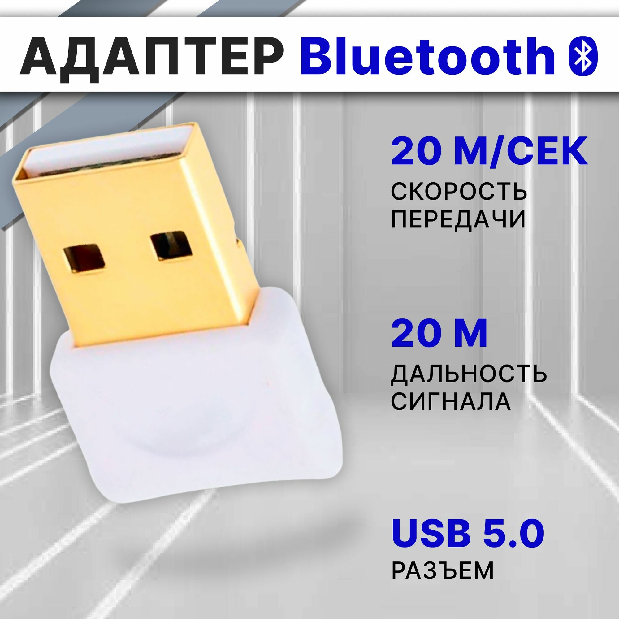 Адаптер Bluetooth 5.0, беспроводной блютуз адаптер usb для компьютера, ноутбука, беспроводных наушников