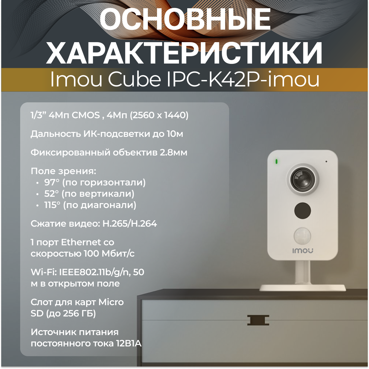 WiFi-камера IMOU Cube 4Мп IPC-K42P-imou 2.8 мм интересное: