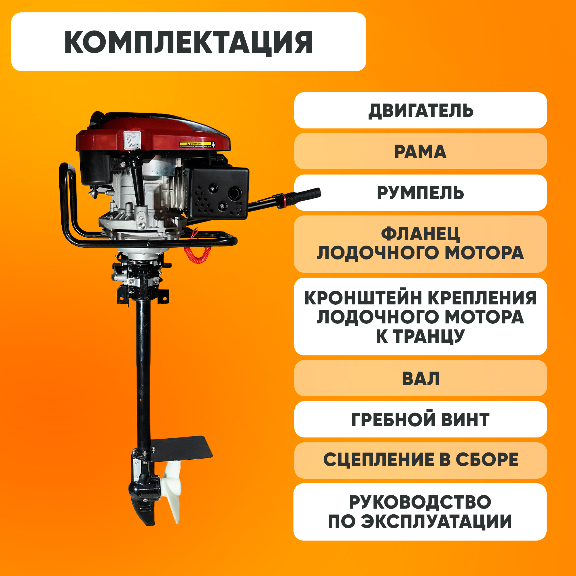 Мотор лодочный бензиновый Loncin (1P70FC, 6.5л.с., 196куб. см, ручной старт, 4-тактный)