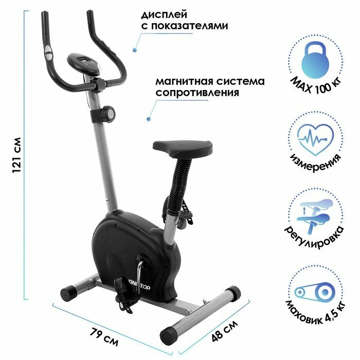 Велотренажёр ONLITOP, ОТ-2520, магнитный, до 100 кг, магнитный, размеры в готовом виде 79 х 48 х 121 см, цвет черный, серый