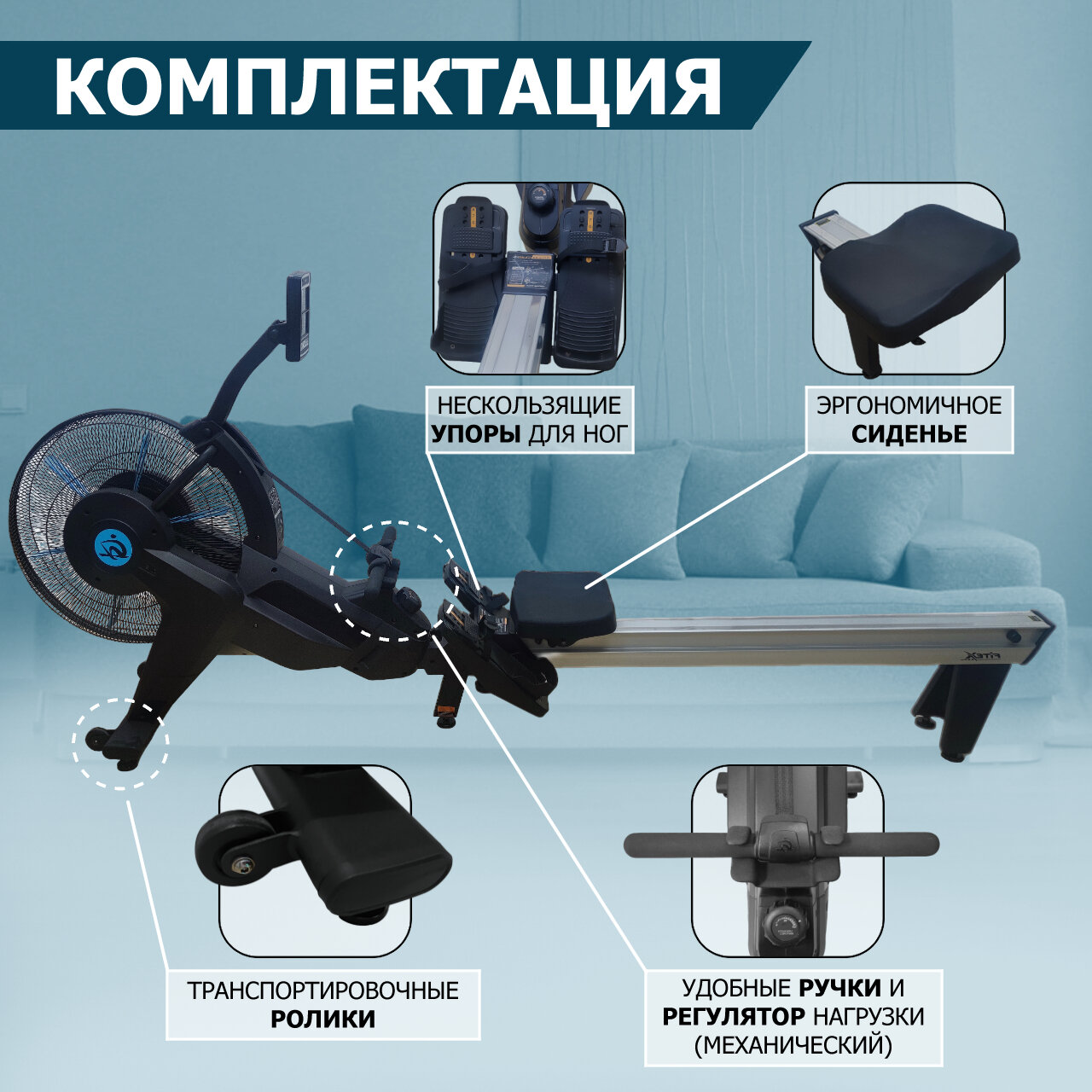 Гребной тренажер аэромагнитный, кардио тренажер гребля спортивный для дома и зала Premier-7 PROF интересное: