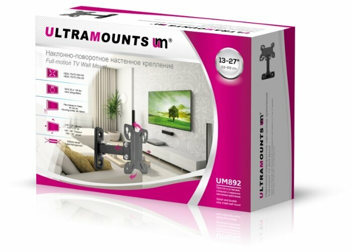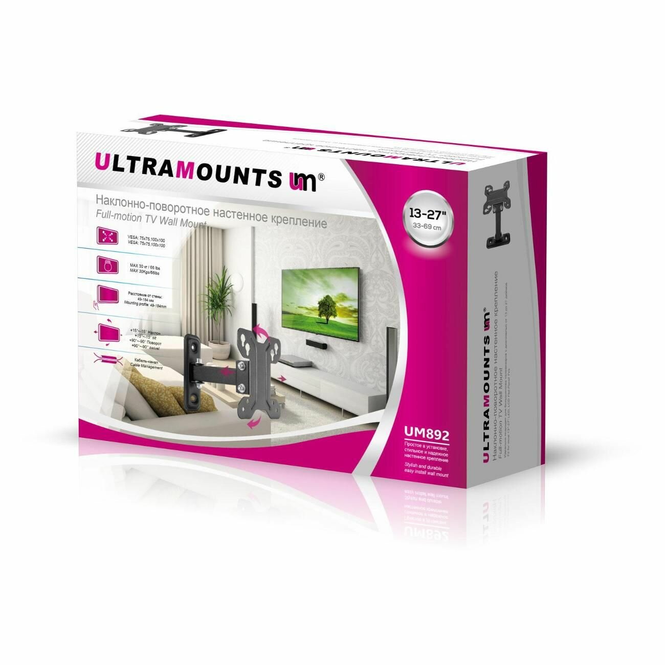Кронштейн для телевизора наклонно-поворотный ULTRAMOUNTS UM892 для 13-27", черный