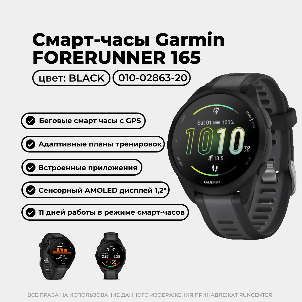 Умные беговые часы Garmin Forerunner 165 Black (010-02863-20)