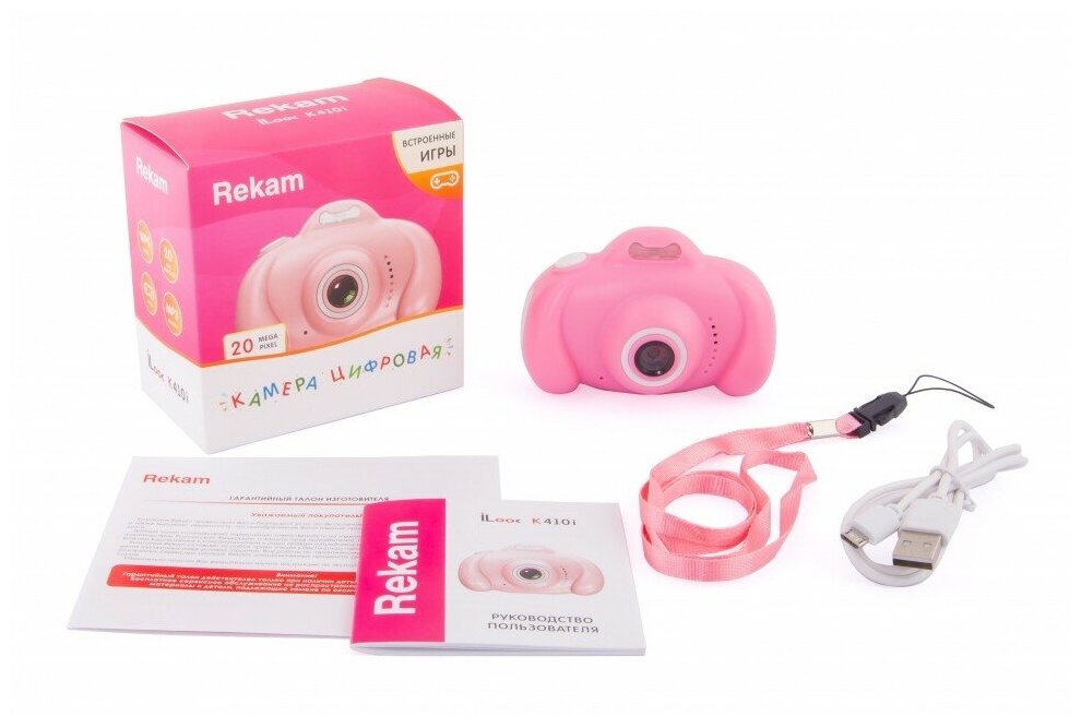 Детская цифровая фотокамера Rekam iLook K410i розовая, 6 встроенных игр интересное: