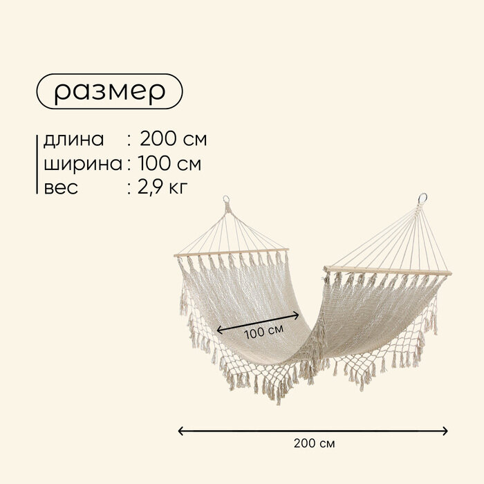 Гамак с каркасом, 100 x 200 см, цвет бежевый интересное: