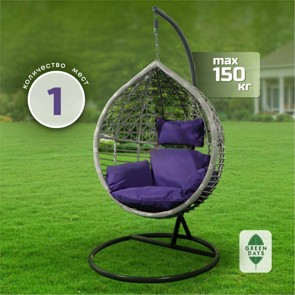 Спорт Качели садовые Кокон темно-серый,подушка фиолет до 150кг GREEN DAYS