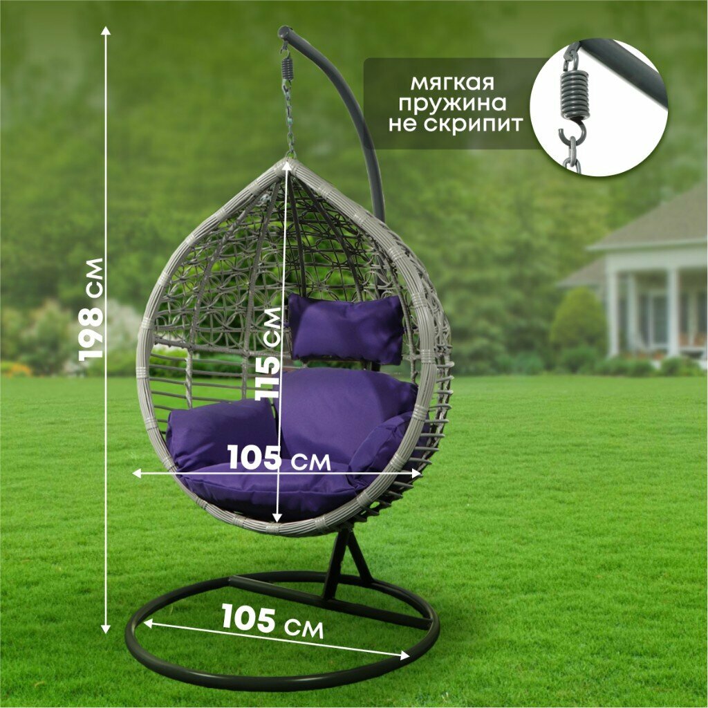 Качели садовые Кокон, 65х105х198 см, 150 кг, Green Days, темно-серые, ротанг, подушка фиолетовая, TZF-H056-18-3712