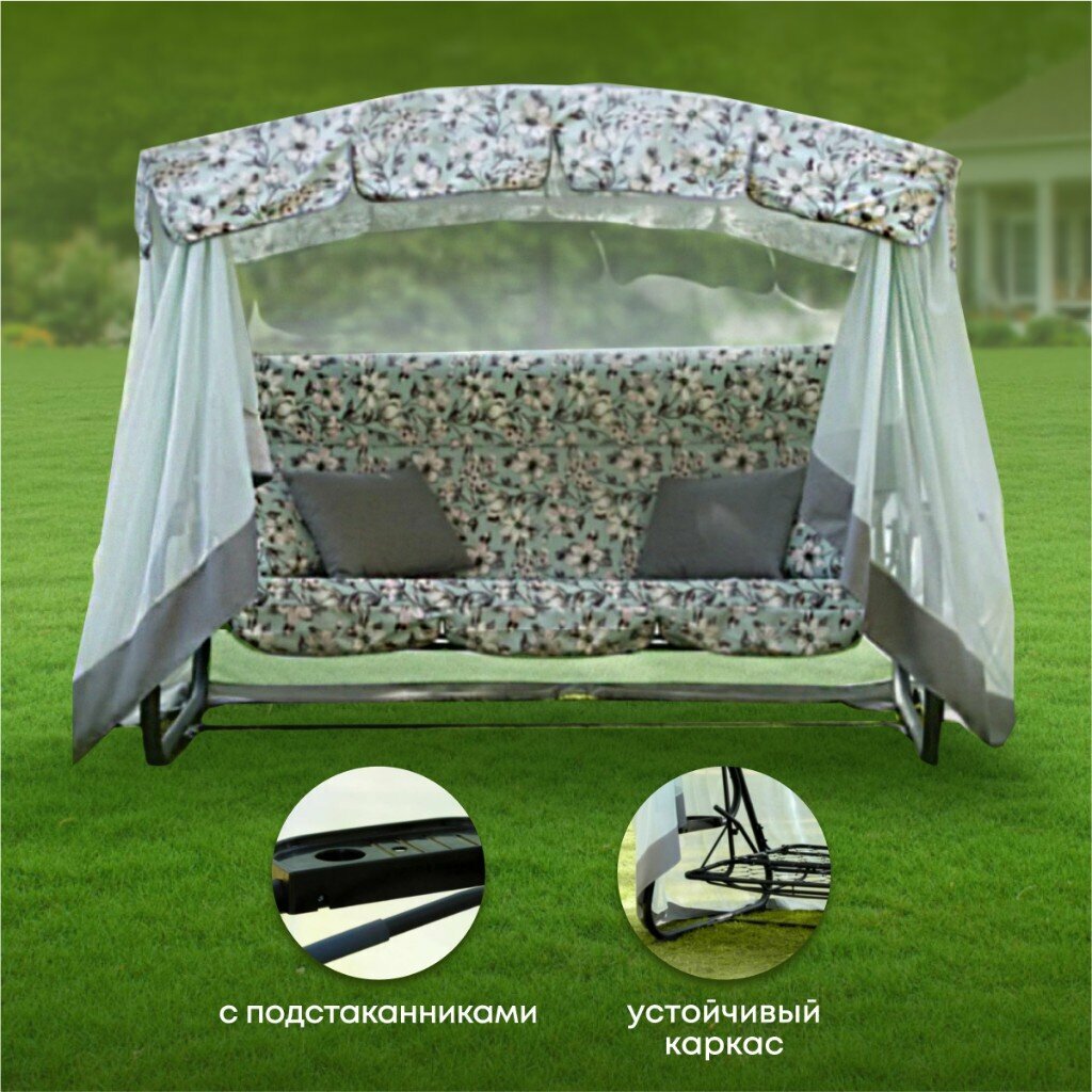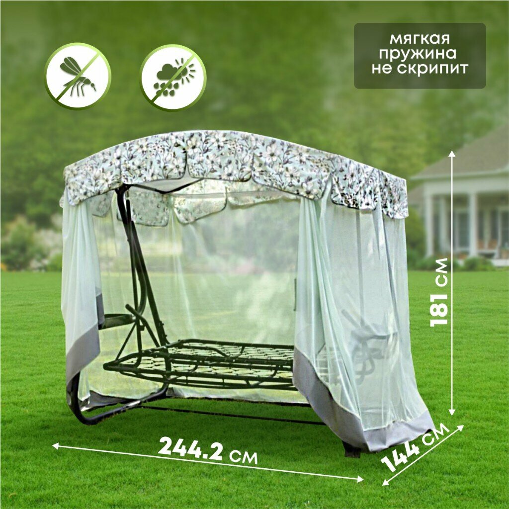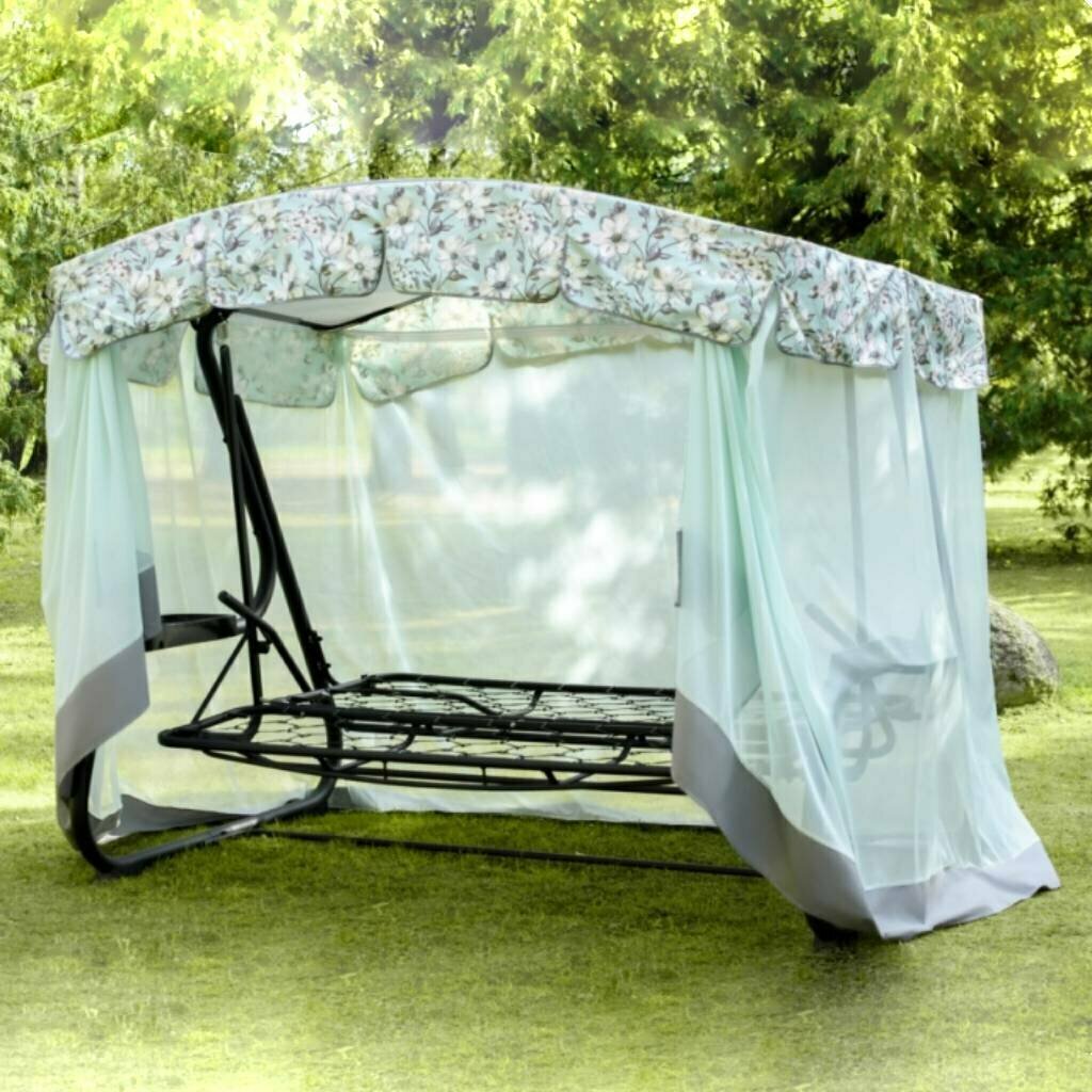 Качели садовые 3-местные, 244.2х144х181 см, 280 кг, Арагон Премиум Flower, раскладываются в кровать, с москитной сеткой, подушка, с1284, металл интересное: