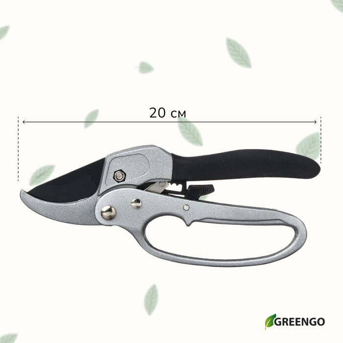 Greengo Секатор контактный, 8" (20 см), с храповым механизмом, металлические ручки