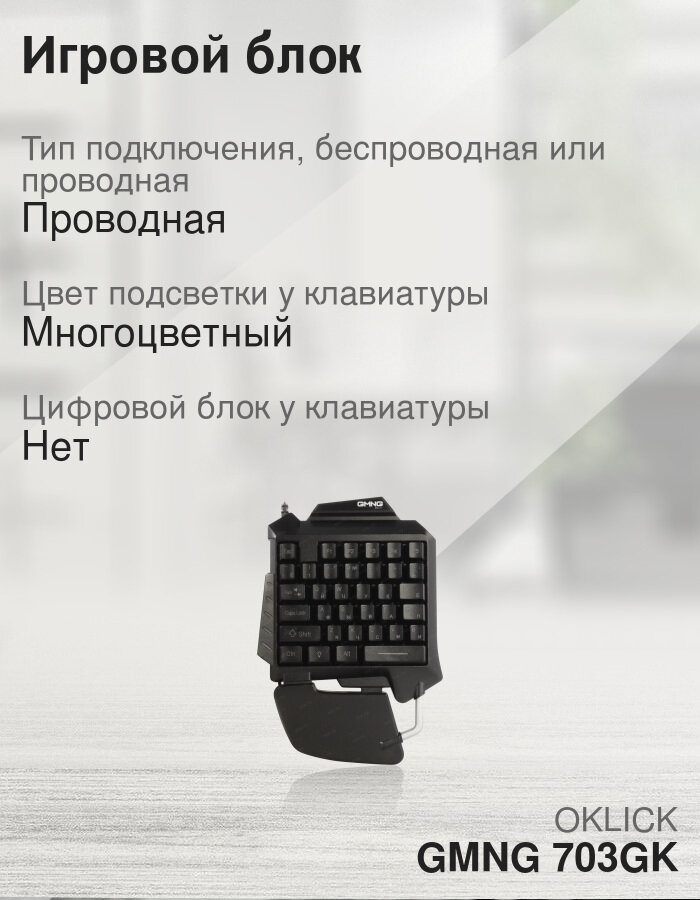 Игровой блок Oklick 703GK, USB, c подставкой для запястий, черный [1533151]