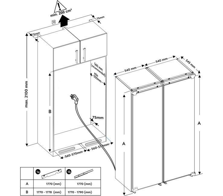 | Дополнительная информация | Объем мороз. камеры (нетто, л) - 197, Размораживание мороз. камеры - No Frost, Общая ширина двух устройств - 108 см |