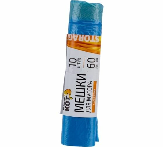 Мешки для мусора Рыжий кот 10шт/рул.с завязками ПНД 60л полиэтилен син.
