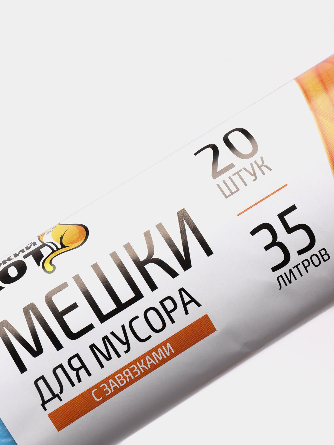 Мешки д/мусора "рыжий КОТ" 35л (20шт./рул.) с завязками, ПНД, синие интересное:
