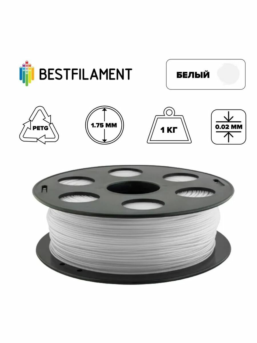 PETG пластик для 3D печати Bestfilament белый, 1.75 мм, 1 кг