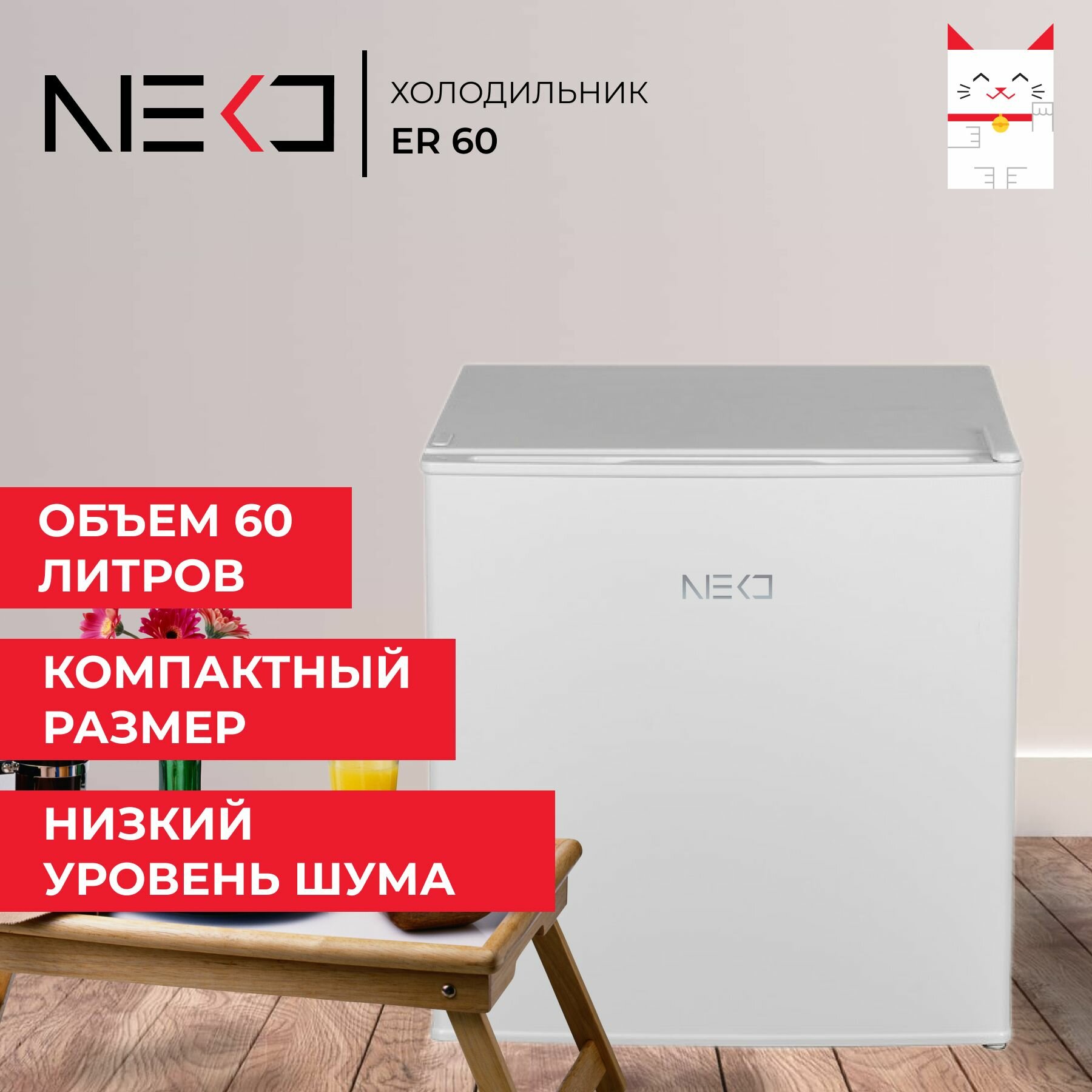 Купить Холодильник однодверный NEKO ER 60, мини холодильник, объем 60 л, высота 53 см, белый
