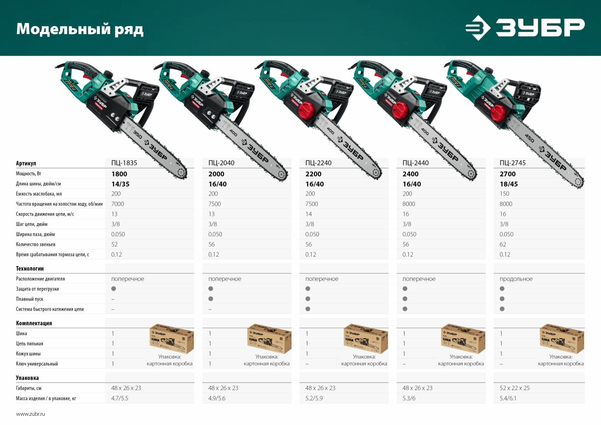 Электрическая цепная пила ЗУБР ПЦ-1835, серия «мастер»