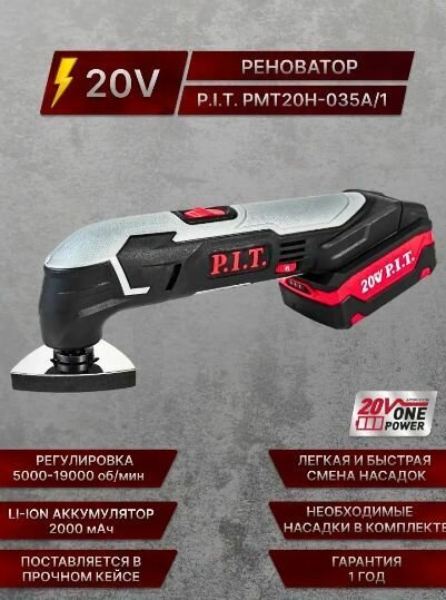 Реноватор аккумуляторный P.I.T. PMT20H-035A/1 на системе OnePower (20В, 5000-19000кол/мин, угол 3,5, 1акб Li-Ion 2Ач, ЗУ 3А, кейс)