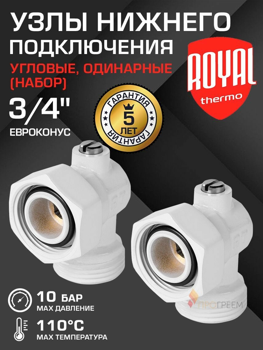 СохранитьНабор нижнего подключения Royal Thermo угловой раздельный 3/4х3/4ЕК (белый) интересное: