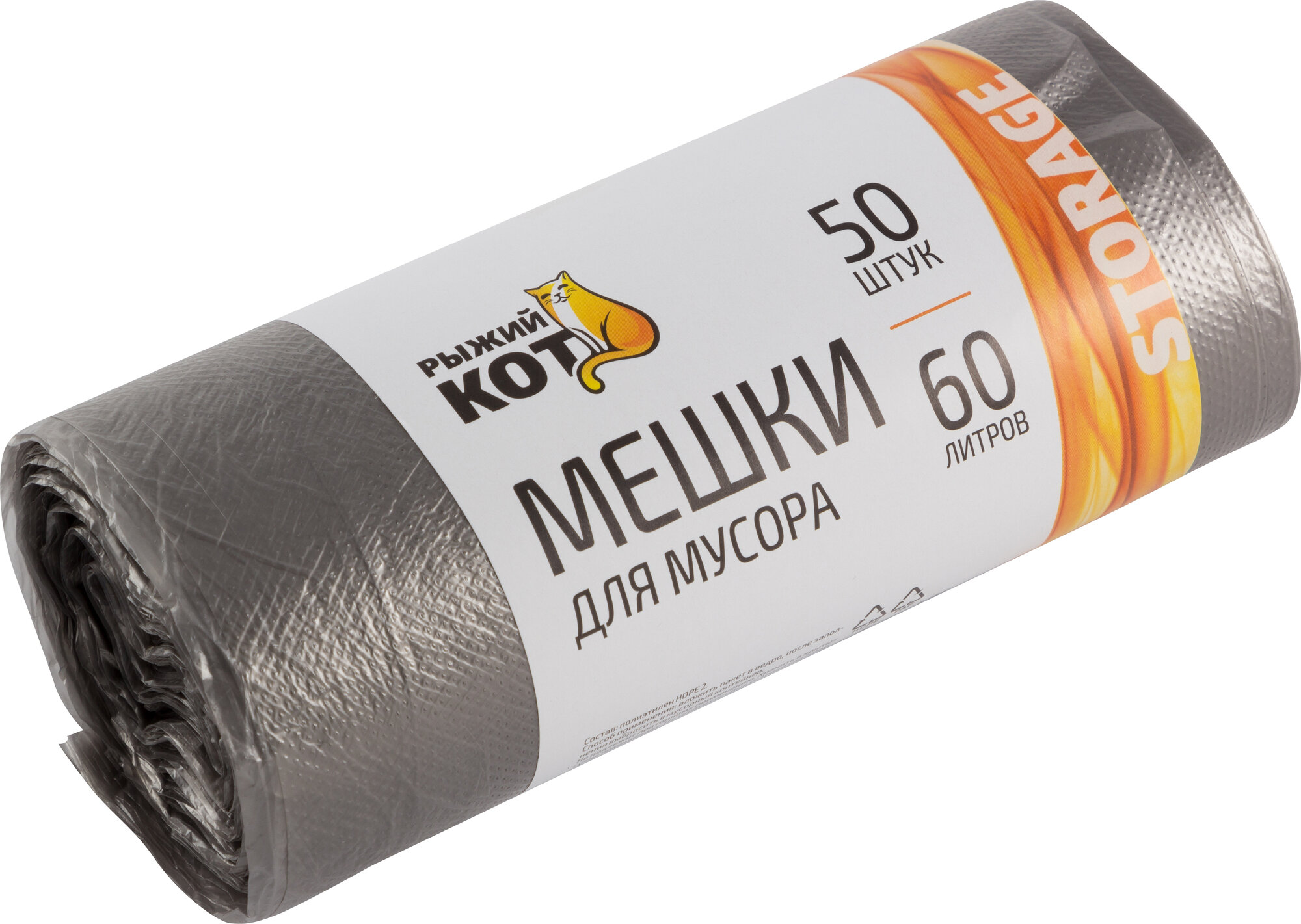 Мешки для мусора Рыжий кот, 5 мкм, 60 л, рулон 50 шт