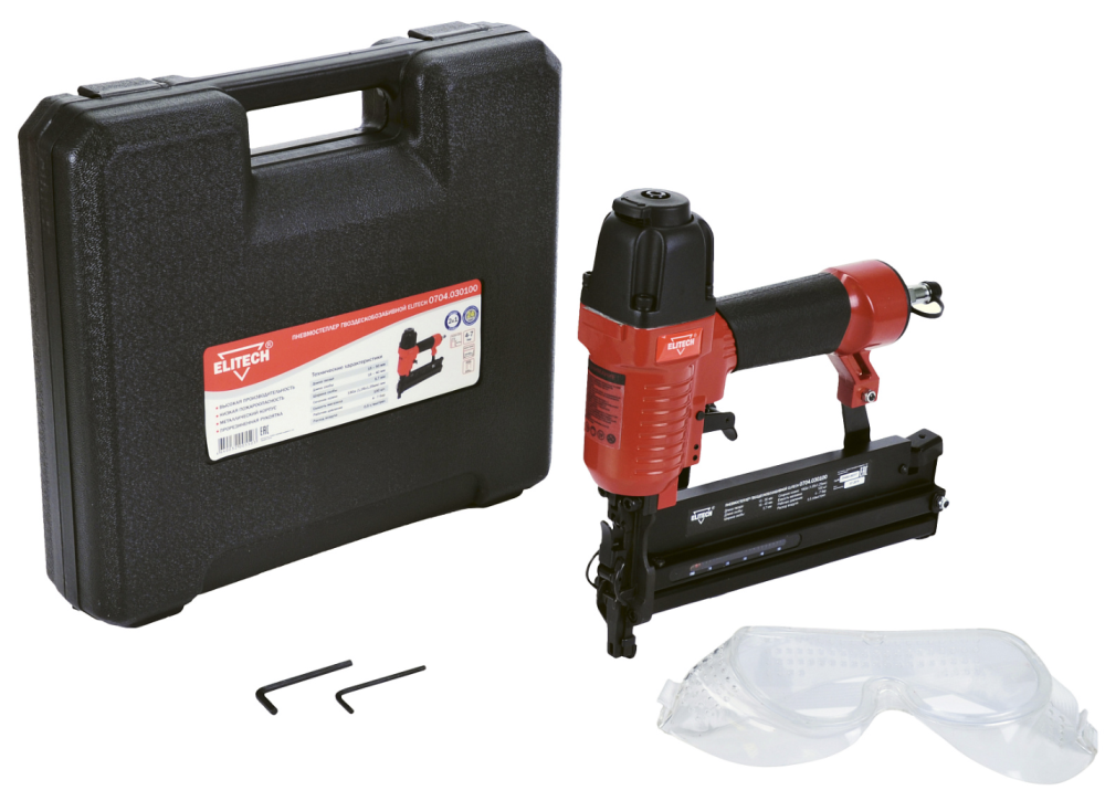 Пневмопистолет гвоздескобозабивной Elitech 0704.030100 18GA,1.05х1.25мм,5.7мм,15-50/16-40мм,1/4",1.48кг,кейс интересное: