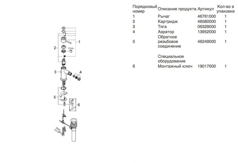 | Высота излива | 96 мм |