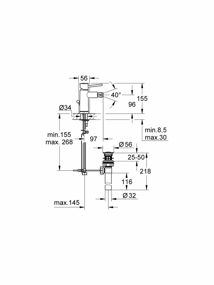 Смеситель для биде Grohe BauClassic, сливной гарнитур, хром 32864000