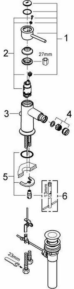 Грое BauClassic смеситель для биде 1/4 хром / GROHE BauClassic смеситель для биде 1/4 хром