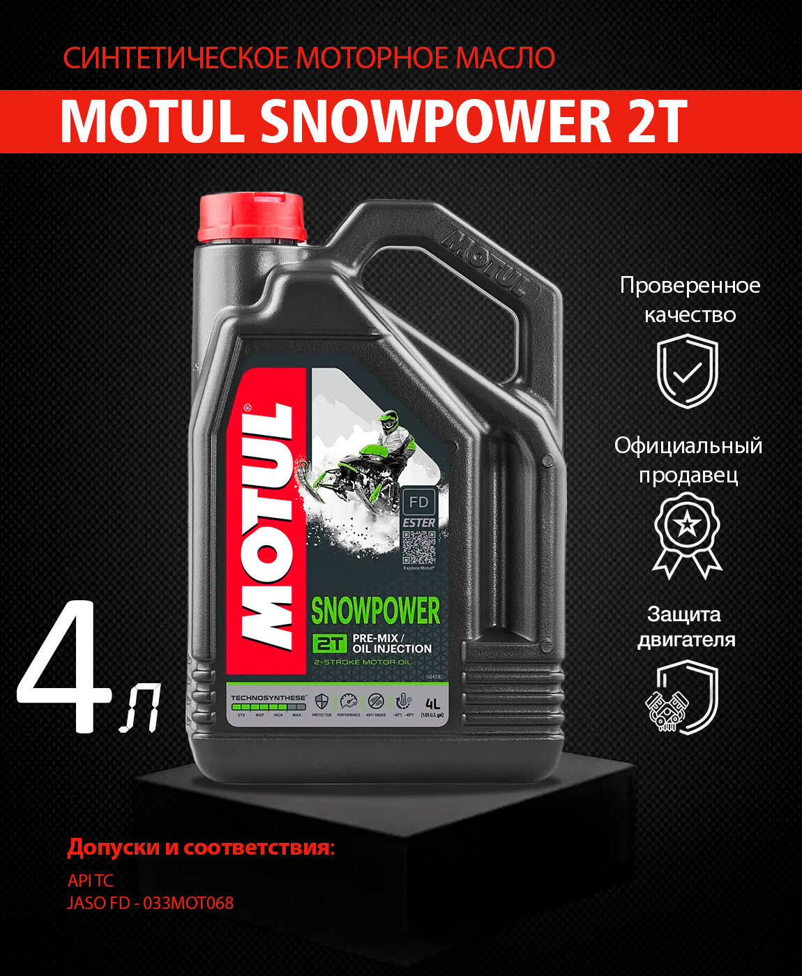 Масло для снегоходов MOTUL Snowpower полусинтетическое, API TC, JASO FD, 2-тактное, 4л, арт. 105888