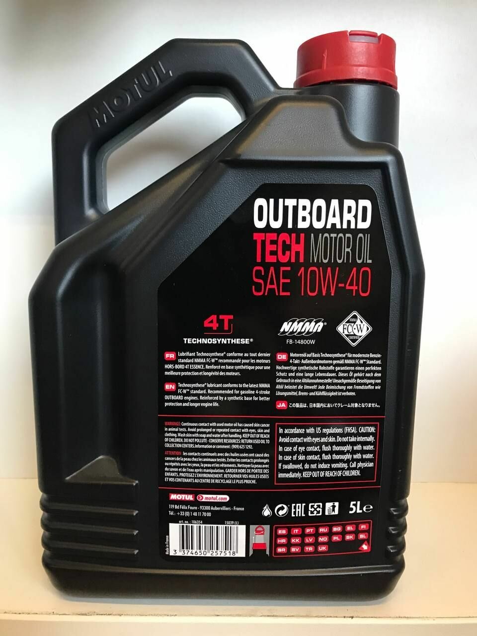 Масло лодочное MOTUL Outboard 4Т Tech 10w-40 для подвесных двигателей SJ/SG FC-W FB-23656K(5л) 106354